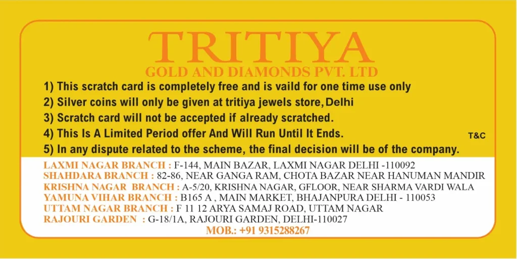 Silver coins will only be given at Tritiya Jewels Store, Delhi.