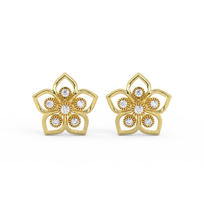Celebrate timeless charm with the Blossom Radiance Diamond Studs — a delicate floral creation that captures the essence of natural beauty. Each petal is sculpted in sleek gold, accented with radiant diamonds that gleam from the heart of the bloom. The elegant symmetry and subtle texturing add depth and grace to this nature-inspired design.