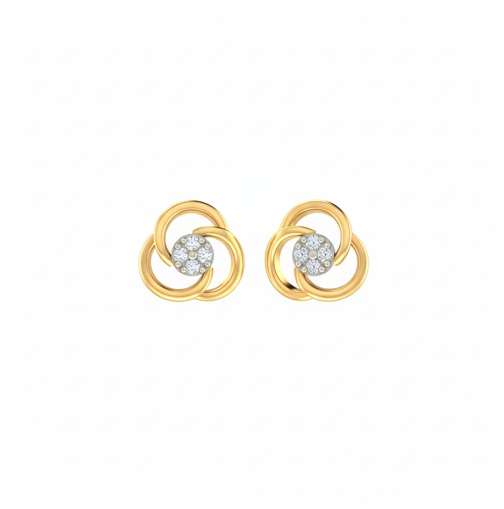 The Clover Cluster Diamond Studs are a celebration of modern geometry and high-impact sparkle. Crafted in warm rose gold, the design features three graceful, intertwining loops that form a chic, abstract clover silhouette. At the heart of this shape, a central cluster of brilliant diamonds is secured, set against a subtle white gold/rhodium finish to maximize their dazzling effect. These studs offer a luxurious, yet refined look, making them the perfect contemporary accessory for adding effortless glamour to professional and everyday attire.