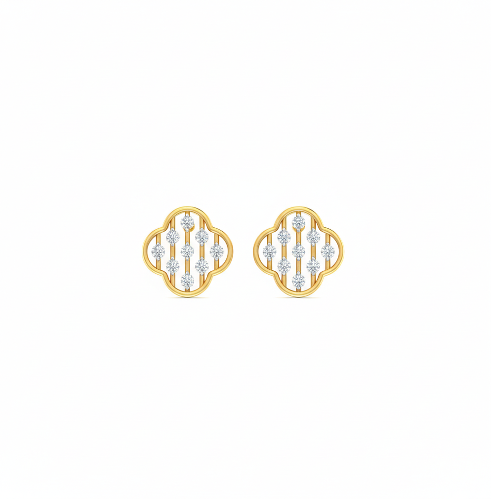 Clover Lattice Diamond Stud Earrings