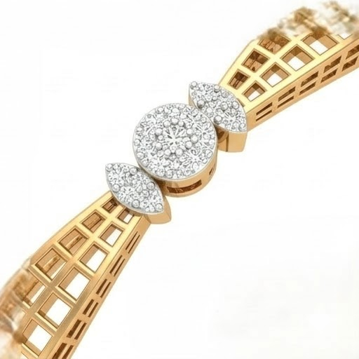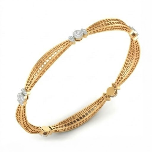 An elegant harmony of design and brilliance, this rose gold bangle features a beautifully structured lattice pattern accented with sparkling diamond clusters placed at balanced intervals. The multi-line band design gives it a refined and contemporary appeal, while the diamonds add a touch of luxury and shine. Perfect for sophisticated everyday wear or special occasions, this bangle reflects timeless beauty with a modern designer touch. ✨