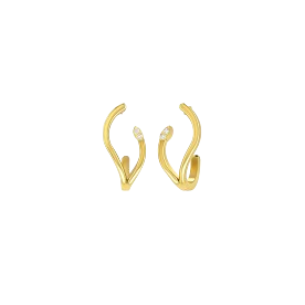 Minimal yet captivating, the Elan Vine Diamond Huggie Earrings by Tritiya Gold & Diamond are inspired by flowing vines gently wrapping around the ear. The design features a smooth open curve with delicate diamonds nestled at the tips, offering a refined touch of brilliance. Lightweight and elegant, these earrings are perfect for modern women who prefer subtle sparkle and fluid design. Available in 18kt and 14kt yellow gold options.