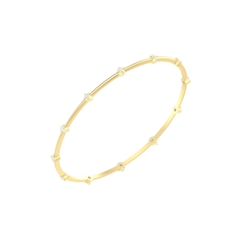 Crafted in radiant white gold, this minimalistic diamond bangle exudes understated luxury. Featuring evenly spaced sparkling diamonds set along a slender band, it adds a touch of refined brilliance to any look. Perfect for stacking or wearing solo, this piece is designed for timeless elegance.