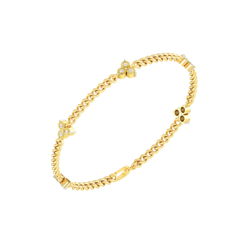 An elegant bracelet crafted in rose gold, featuring delicate floral diamond motifs placed along a sleek chain. The unique combination of rose gold and shimmering diamonds creates a timeless piece that blends modern sophistication with natural beauty. Perfect for daily wear or gifting.