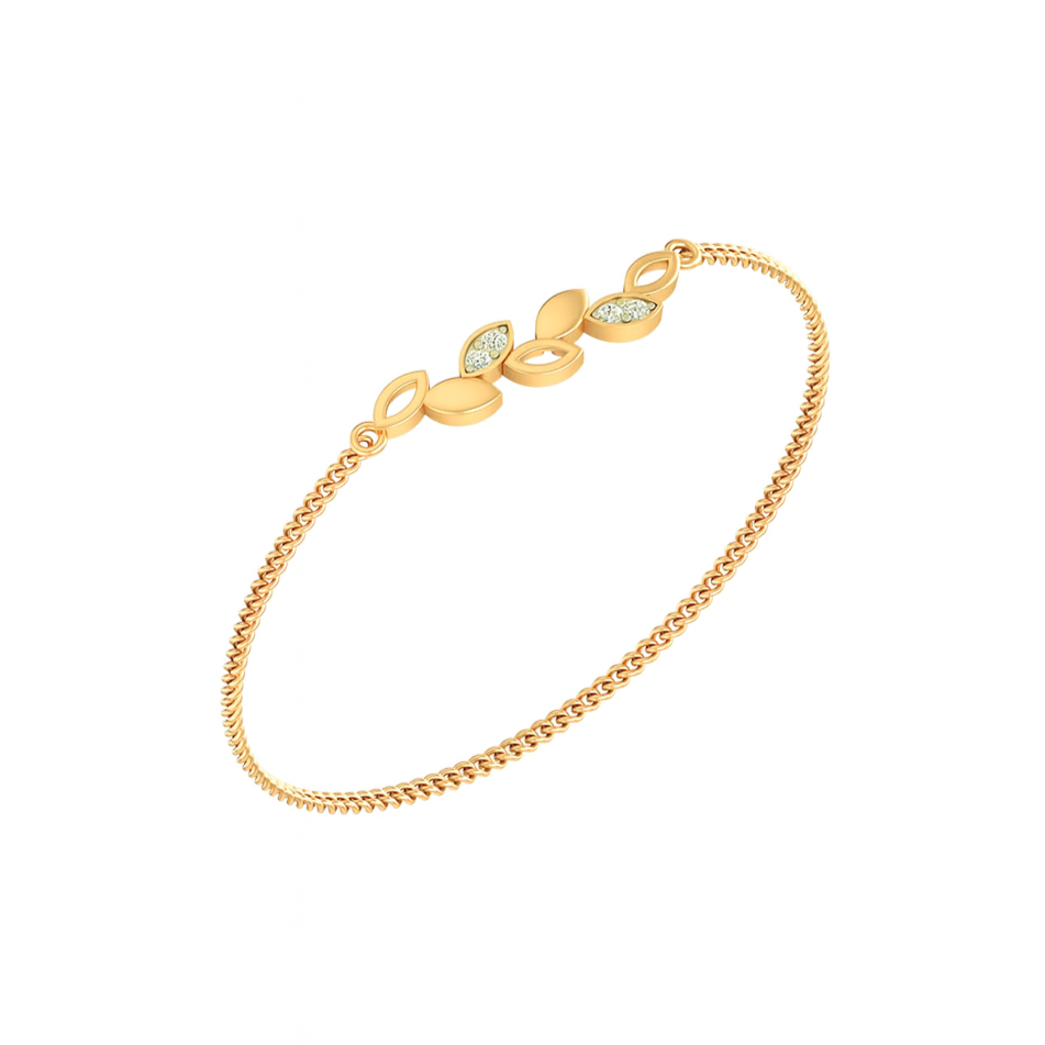 Inspired by nature’s elegance, the Floral Grace Diamond Bracelet is a delicate fusion of gold artistry and timeless sparkle. Featuring marquise-shaped motifs arranged like blooming petals, accented with dazzling diamonds, this bracelet exudes feminine charm and sophistication. The slim gold chain adds a modern touch, making it an ideal choice for both daily wear and special occasions.