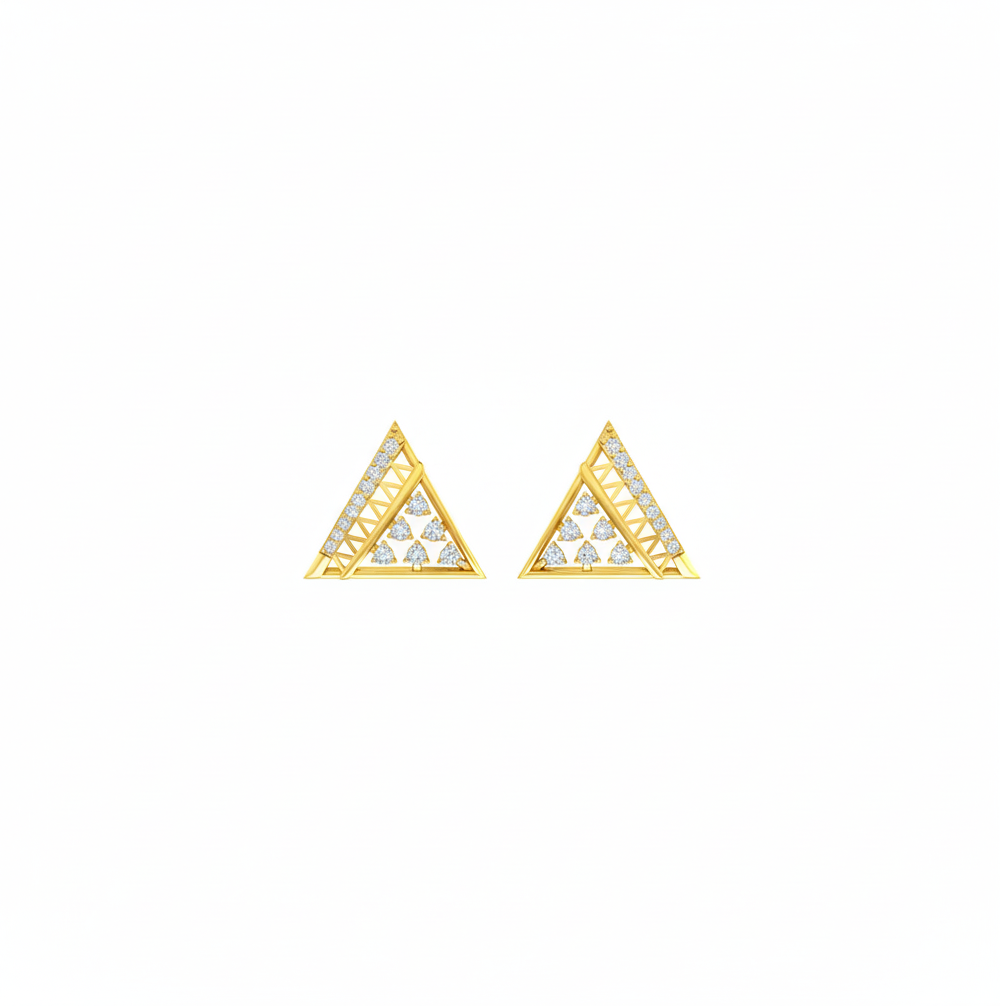 These striking Geometric Prism Diamond Studs are the ultimate statement in contemporary jewelry design. Crafted in warm Rose Gold, the earrings feature a bold triangular silhouette with a captivating internal structure. The design is split into artistic sections: one side showcases an intricate lattice or cross-hatch pattern for texture, while the center is brilliantly filled with a cluster of round diamonds, set to maximize sparkle. Their sharp lines and modern architecture make them perfect for adding an edgy, sophisticated touch to your everyday or evening ensemble.