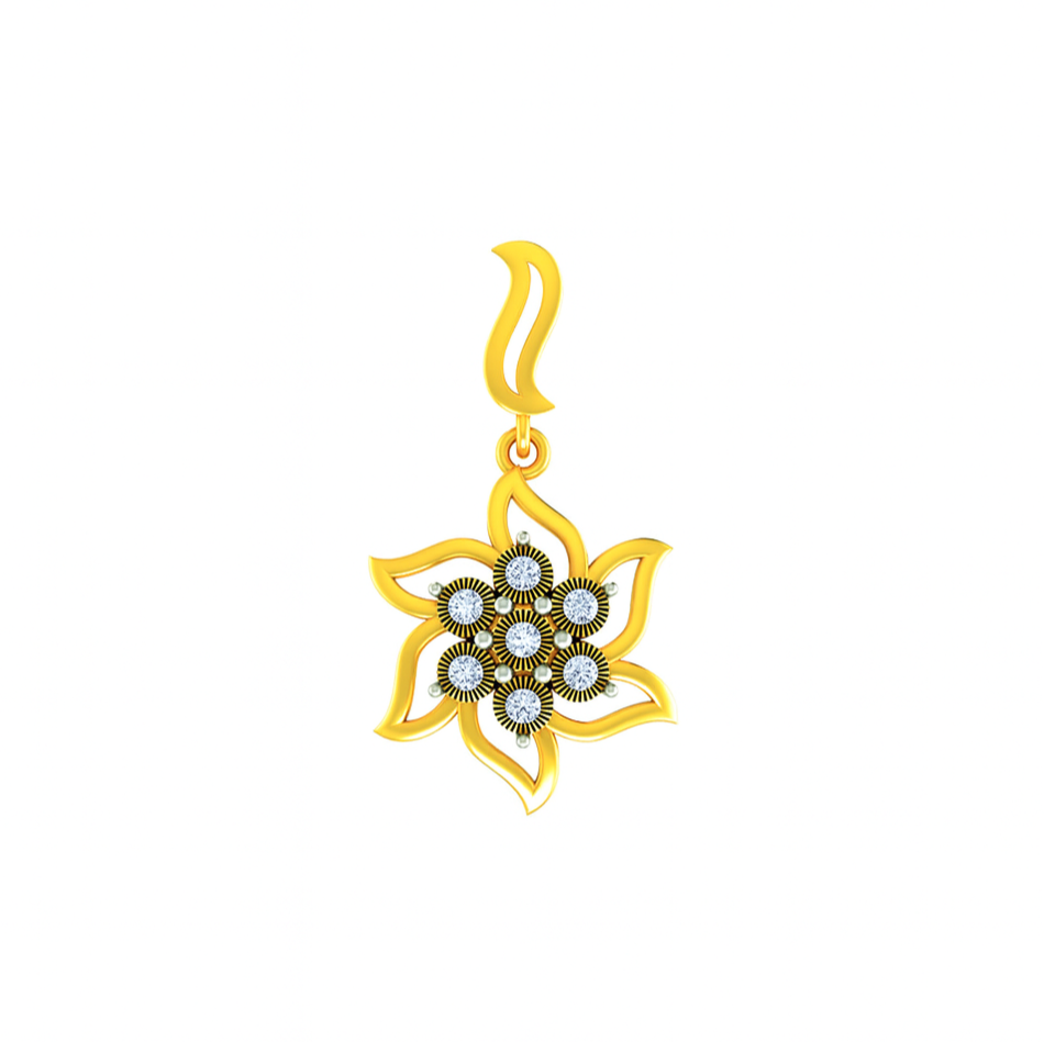 Inspired by the beauty of nature, this pendant features a blooming floral motif in radiant yellow gold, highlighted with sparkling white diamonds at the center of each petal. Its artistic design combines traditional charm with modern elegance, making it a versatile piece for all occasions.