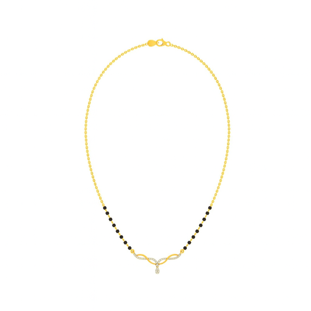 The Infinity Drop Diamond Mangalsutra beautifully symbolizes eternal love and commitment. Crafted in 18KT and 14KT gold, it features a delicate chain with black beads and an elegant infinity-inspired pendant that gracefully holds a teardrop diamond. Its unique design blends modern sophistication with traditional charm, making it a versatile piece for everyday wear and special occasions.