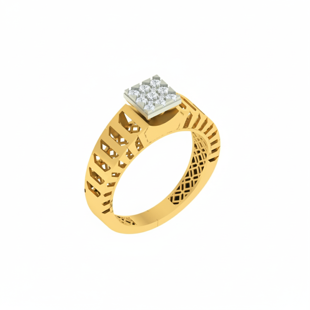 Lattice-Band Diamond Cluster Ring is a striking expression of modern elegance and craftsmanship. Crafted in a rich rose gold tone, this ring features a bold, openwork lattice design on the band, offering a distinctive, contemporary look. The centerpiece is a stunning square cluster of brilliant round diamonds, set to maximize sparkle and create the illusion of a single large stone. This ring is a perfect statement piece for those who appreciate intricate design combined with classic diamond brilliance.