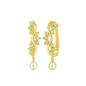 The Leaf Drop Diamond Earrings by Tritiya Gold & Diamond bring together the charm of nature with the grace of rose gold. Featuring a winding vine-like structure adorned with marquise-shaped diamond leaflets and a delicate teardrop dangler, this elegant design flows with feminine charm. A perfect blend of classic floral aesthetics and modern sophistication, available in 14kt and 18kt rose gold to suit your taste.