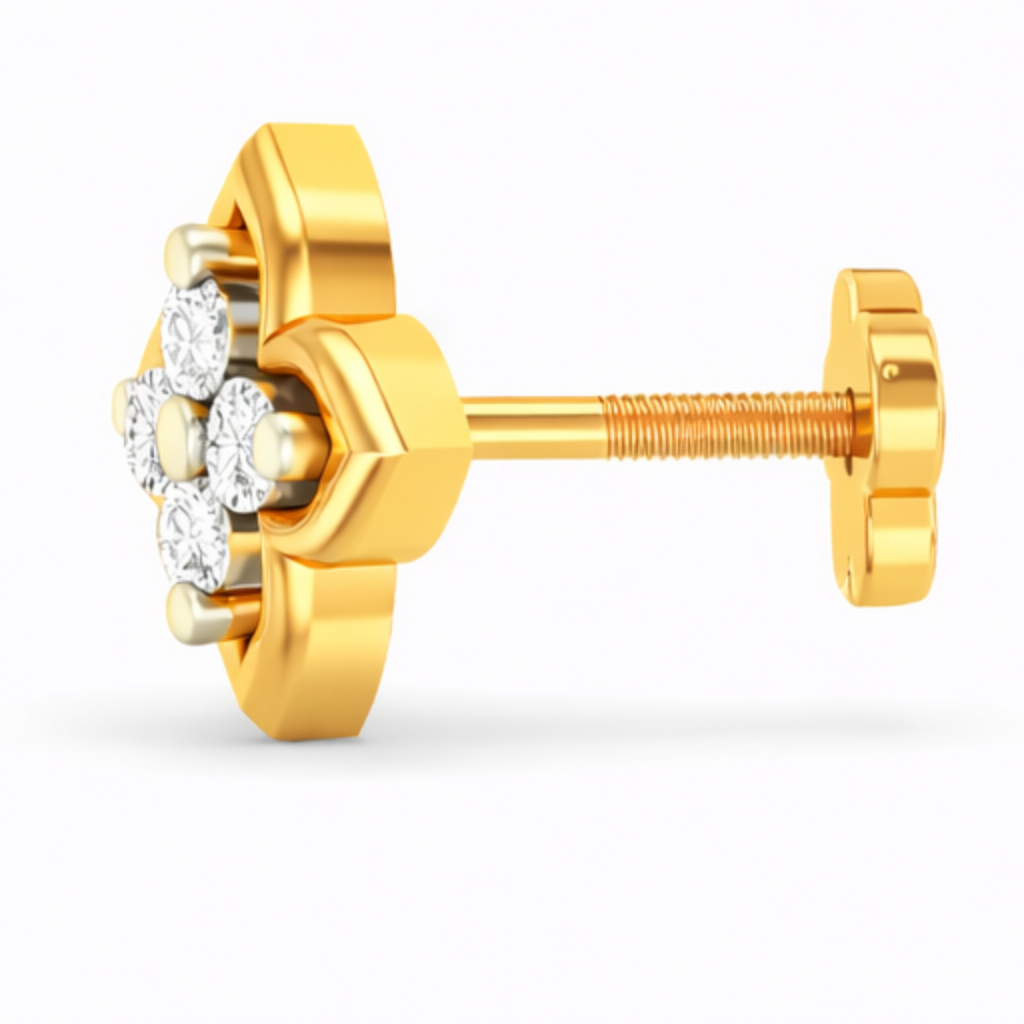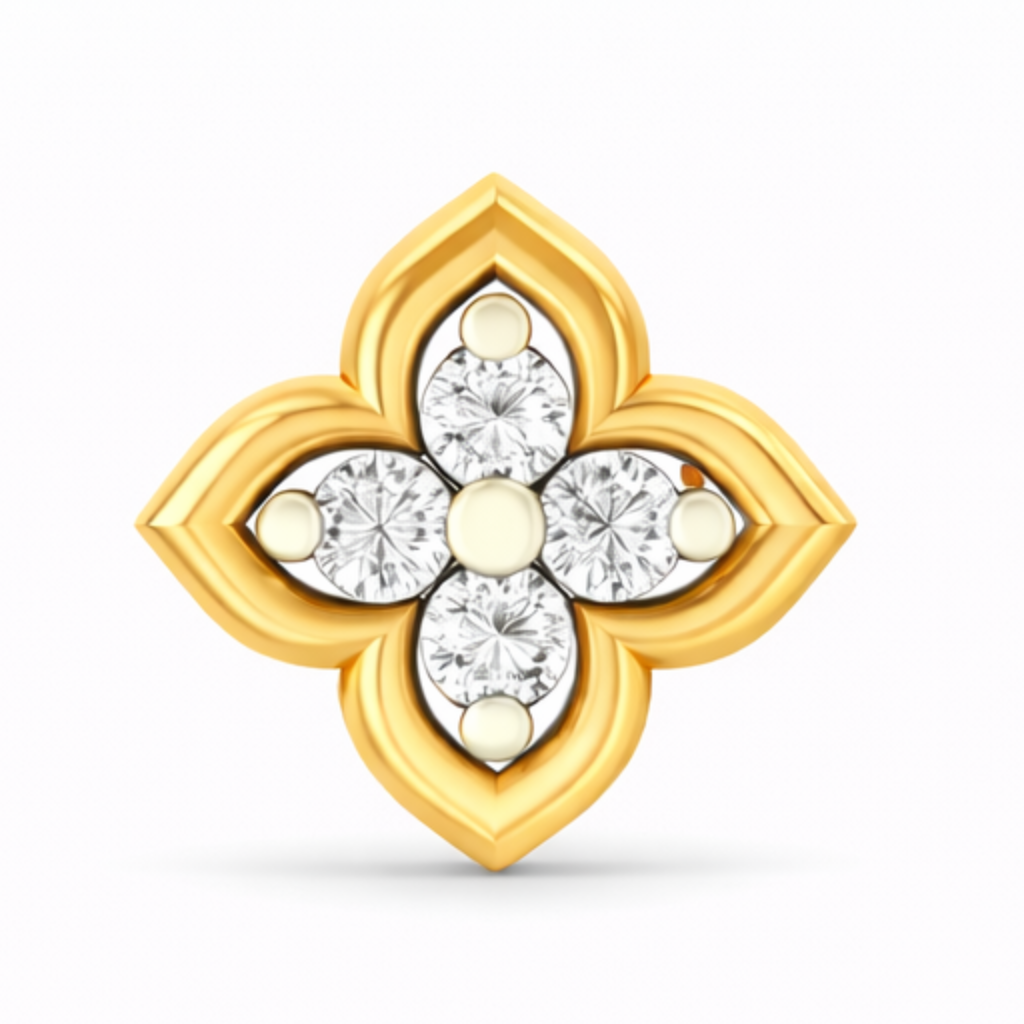 A graceful and minimal design, this diamond nose pin features a four-petal clover-inspired motif with a sparkling diamond cluster at its center. Crafted in radiant yellow gold, the smooth petal outlines give it a soft and elegant look while maintaining a traditional charm. Lightweight and comfortable, this nose pin is perfect for everyday wear and adds a subtle touch of diamond brilliance to your style. πβ¨
