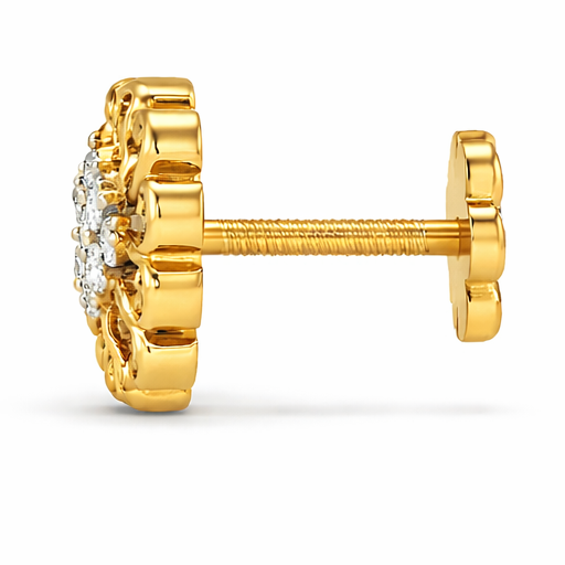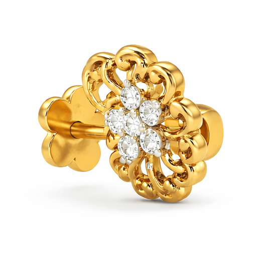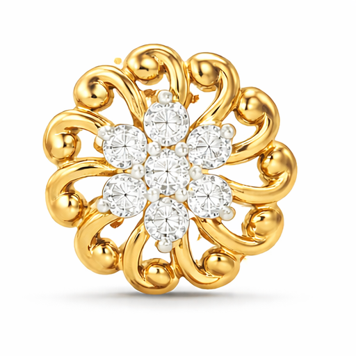 Inspired by the beauty of a blooming sunflower, this elegant nose pin features a radiant floral design with a sparkling diamond cluster at the center. The surrounding gold petals are crafted in a graceful swirl pattern, giving the piece a lively and artistic look. Made in classic yellow gold, this lightweight nose pin is perfect for daily wear and adds a charming touch of sparkle to your traditional or modern style. 🌼✨