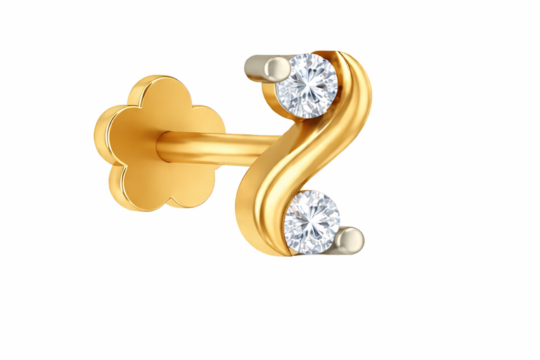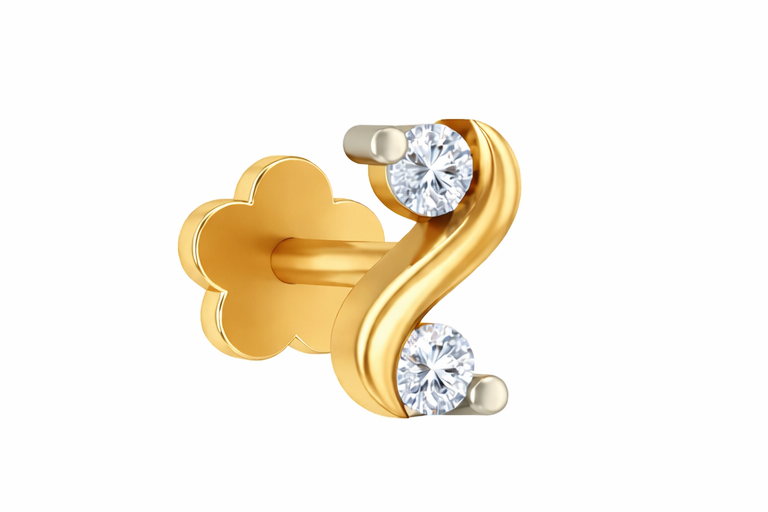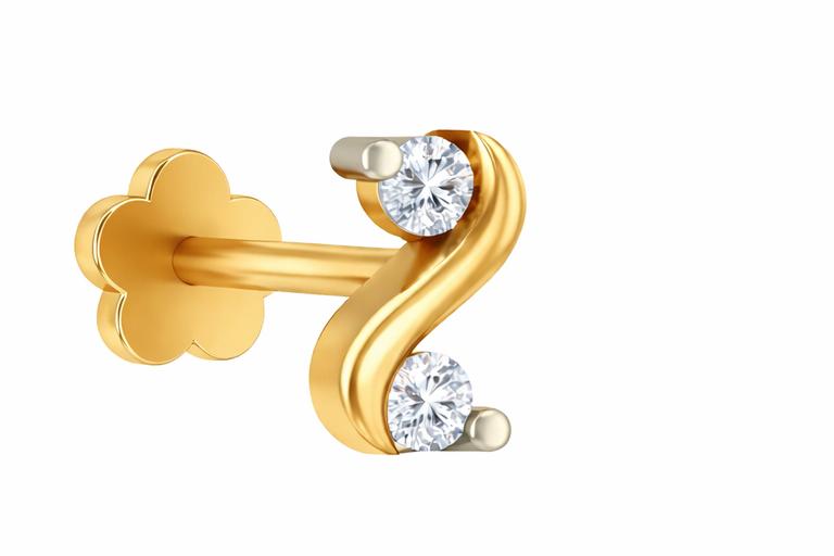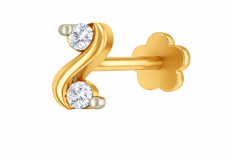 A sleek and modern design, this diamond nose pin features two sparkling diamonds placed on a graceful curved gold band, creating a stylish and contemporary look. Crafted in radiant yellow gold, the flowing S-curve design symbolizes elegance and simplicity. Lightweight and comfortable, this nose pin is perfect for minimal everyday styling and for those who love subtle yet sophisticated diamond jewelry. ✨