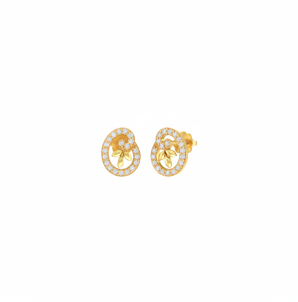 These exquisite stud earrings capture the elegance of nature in a modern, swirling design. Crafted in gleaming gold, each earring features a delicate, polished petal or leaf motif nestled within a graceful spiral. The spiral is brilliantly adorned with a pave setting of sparkling round-cut diamonds, creating a radiant halo effect. These lightweight and chic earrings are perfect for adding a subtle touch of sophistication to your daily attire or for complementing an evening look with timeless grace.