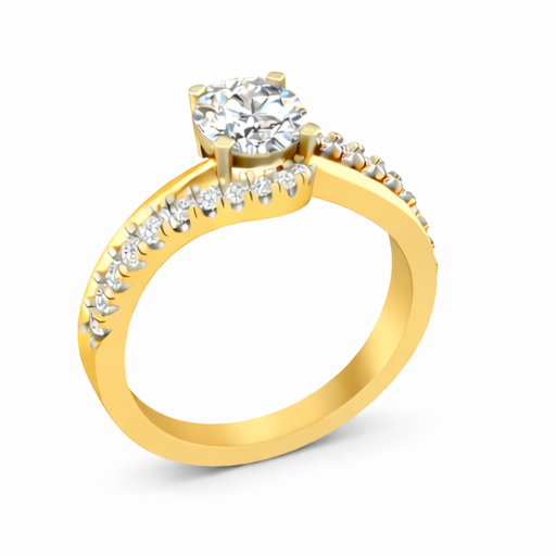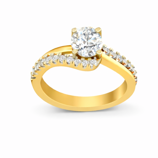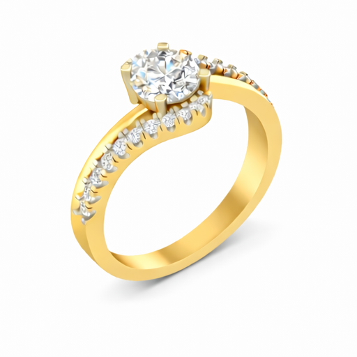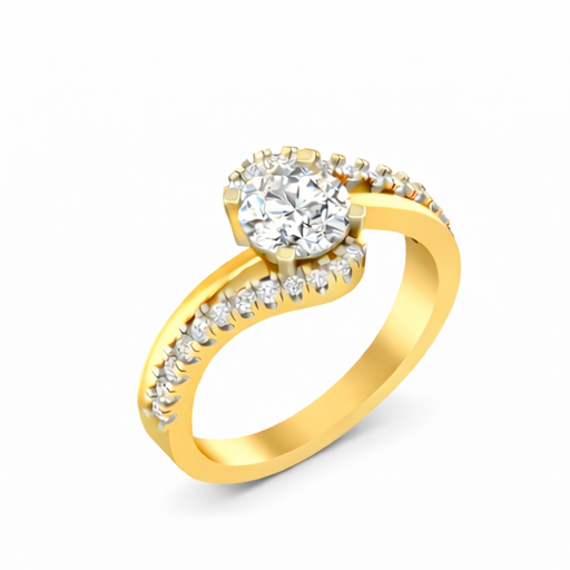 A beautiful symbol of elegance and love, this ring features a brilliant round center diamond held in a classic prong setting, enhanced by a delicate halo for added sparkle. The uniquely designed twisted band is adorned with shimmering diamonds, creating a graceful flowing pattern that adds movement and charm to the design. Crafted in a warm rose gold finish, this ring is perfect for engagements or as a timeless piece that reflects sophistication and modern romance.