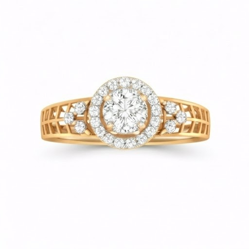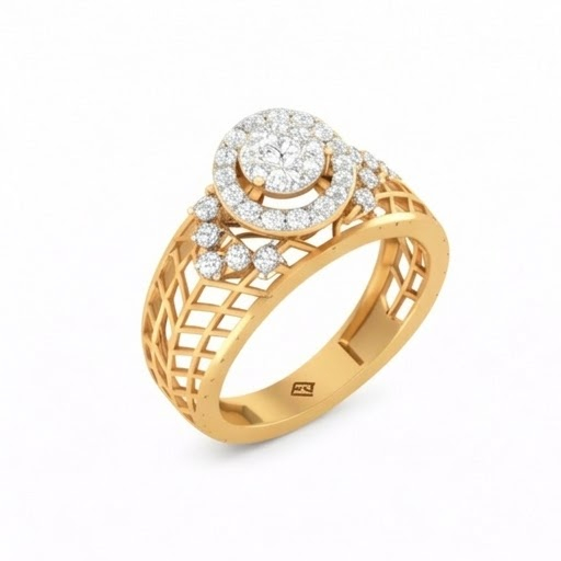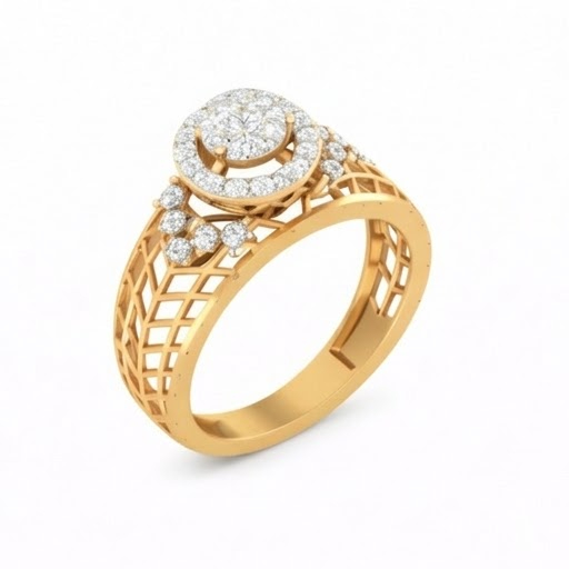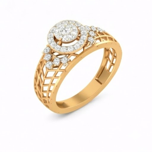 A beautiful fusion of vintage charm and modern brilliance, this diamond ring features a sparkling round cluster center highlighted by a delicate halo for added radiance. The intricately designed lattice-pattern band gives the ring a royal and antique-inspired look while maintaining a lightweight and comfortable feel. Crafted in an elegant rose gold finish, this ring is perfect for those who appreciate detailed craftsmanship and timeless sophistication. Ideal for special occasions or as a graceful everyday luxury piece.